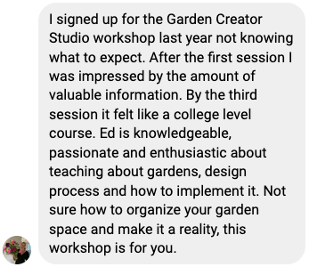 Once I got clear on the few things that truly mattered to make a garden space successful I got so excited I started talking with people about it- and discovered a love for teaching people to create their own garden living spaces.